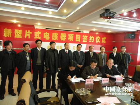 中国台湾网4月8日蚌埠消息 4月6日下午,安徽省蚌埠市双环电子集团、台湾承达电子、台湾政协企业三方在双环集团公司正式签约新型片式电感器项目。蚌埠市政府秦武副市长、高新技术开发区周刚民主任、台办杨凤生主任、薛海波副主任出席签约仪式。