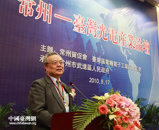 9月17日,“常州——台湾光电产业合作洽谈会”在常州举行,台湾区电机电子工业同业公会副理事长郑富雄致辞。(中国台湾网 钟宝华 摄)
