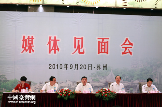 9月20日,苏州市委副书记、市长阎立(中)等同采访“江苏台湾周”的各路媒体记者见面,介绍了苏州与台湾经贸合作交流情况。(中国台湾网 钟宝华 摄)