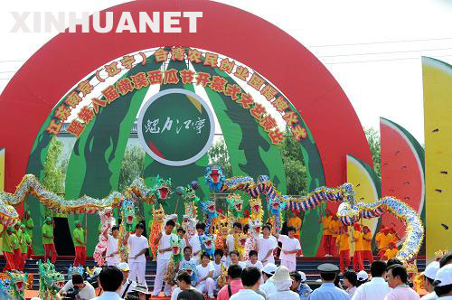 5月30日,南京横溪农民在台湾农民创业园揭牌仪式上进行舞龙表演。
