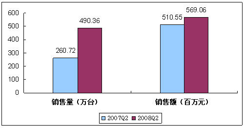 赛迪顾问市场监测数据显示,2008年Q2中国闪存盘市场增长十分迅猛,实现总销量490.36万台,与2007年同期相比增长88.1%;实现销售额5.69亿元,同比增长11.5%。闪存盘以其体积小巧、轻便耐用等特点,得到越来越多消费者的青睐,使得本季度同比增幅明显高于上个季度。