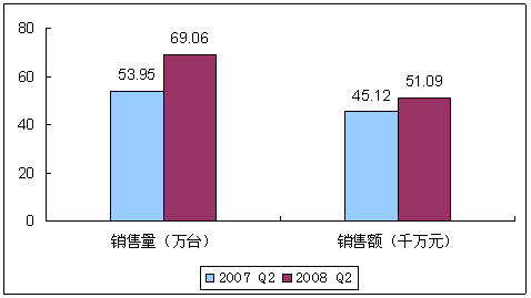 赛迪顾问市场监测数据显示,2008年Q2中国移动硬盘市场稳中有升,实现总销量69.06万台,与2007年同期相比增长28.0%;实现销售额5.11亿元,同比增长13.2%。