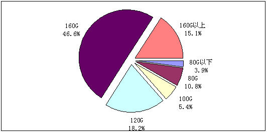 科技发展的日新月异,使得4G、8G乃至更大容量的闪存盘倍受消费者的青睐。但截至2008年第三季度,2G、4G容量的闪存盘成为市场主流,其市场份额分别为49.6%和24.7%。移动硬盘的产品容量发展迅猛,在仍以160G容量产品占据市场主流的前提下,250G、320G容量产品的强劲发展势头不可小觑。2008年第三季度,160G及以上的移动硬盘的市场份额已经高达66.1%。