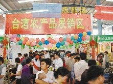 据悉,参展、参会的代表达500多人,其中台商和外商超过340人。“台湾展区”设有75个标准展位,有台湾莲雾、杨桃、芒果、哈密瓜、柳橙、番石榴、葡萄柚、木瓜和菠萝等十多种台湾的时鲜热带水果和400余种农产品深加工制品参加展示展销。参展的台湾农业团体、农业企业和大陆台资农业企业总数达到100多家,参展的台湾深加工农产品包括茶叶、水产品、饮料、蜜饯、果冻等20类100多种。