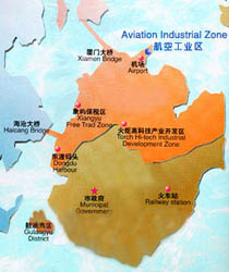 厦门航空工业区位于厦门本岛的东北部,是厦门国际航空城的组成部分,占地面积1.64平方公里。工业区的东北部面向大海,西部与福厦公路、机场路紧邻,距高速路6公里,距市中心8公里,交通便捷。 与航空工业区相配套的生活区占地1.47平方公里,位于工业区的东南部,其东北部面向大海。该生活区规划分为高级住宅区和普通住宅区,居住人口约45,000人。