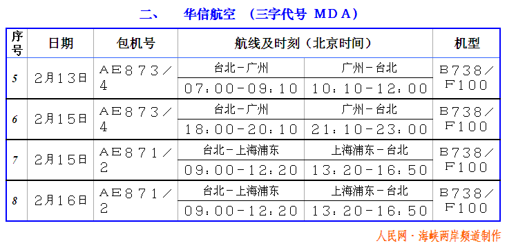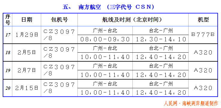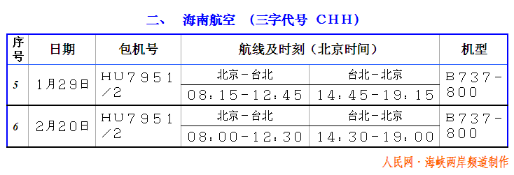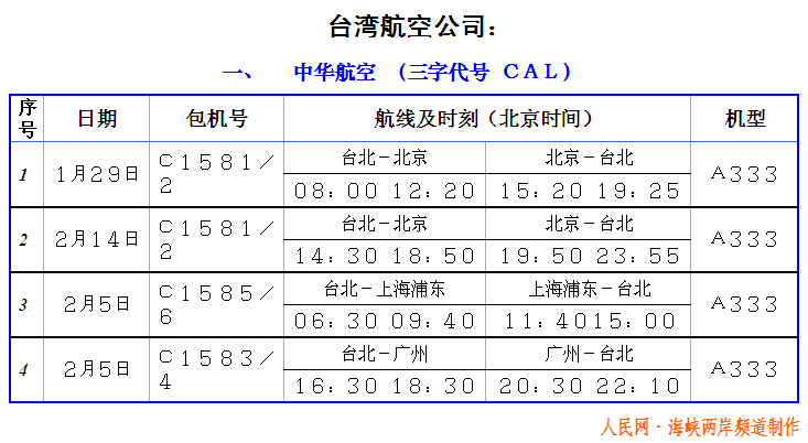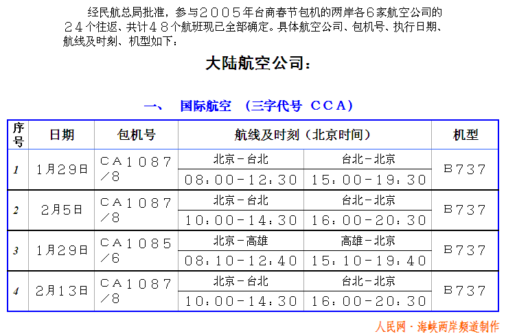 2005年台商春节包机航班