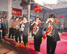 11月28日上午,福建省龙海市白礁村王氏宗祠“世飨堂”,台湾立法院长王金平的胞兄、岛内昱庆实业股份有限公司总裁王珠庆带着儿子王峻邦、王峻良,在这里虔诚地焚香跪拜。袅袅青烟中,高雄王姓望族终圆萦绕心中多年的大陆寻根梦。