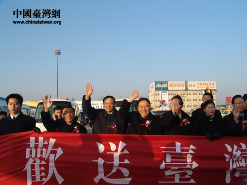 国台办北京市民航总局等各级领导“欢送台湾同胞回家过年” 中国台湾网1月25日消息 06年两岸春节包机国航首航仪式在北京首都机场举行。乘坐首航班机的众多台胞手持机票,陆续登上了回家过年的国航飞机。国台办、北京市、民航总局等多位领导满怀深情送别回家台胞。