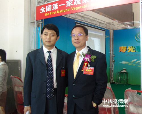 海峡两岸农业交流协会副主任李永华(左)与台湾省农会总干事张永成(右)在会展现场