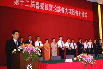 由于鲁台双方提前进行了项目对接、洽谈,所以合作的成功率大大提高,据初步统计,鲁台会期间签约项目435个,合同、协议台资额和外资额共30.6亿美元,合同内资额221亿元人民币。其中,台资项目136个,合同台资额17.9亿美元,协议台资额3.1亿美元;外资项目58个,合同外资额9亿美元;内资项目241个,合同额221亿元人民币。在签约项目中,合同台资额1000万美元以上的大项目有50多个,100多签约项目平均合同台资额达1280万美元,其中最大的项目合同台资额达3.75亿美元;合同项目占全部签约总额的83%;高科技和服务业类项目也进一步增多。目前,还有一大批台资项目正在洽谈之中,其后续成果将逐渐显现。 (潍综)
