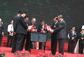 张克辉、韩寓群、李炳才、孙守璞、张敏、江丙坤、张传林共同将取自海峡两岸,象征繁荣、合作、共赢之水,注入聚财宝鼎,为2006海峡两岸制造业博览会开馆