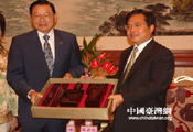 张新起与江丙坤互赠纪念品]]>