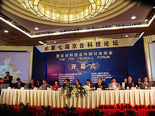 2004年9月10日,第七届京台科技论坛暨京台科技合作研讨洽谈会开幕。500余名来自京台两地科技界、学术界和工商界专家、学者和企业家再次相聚北京,围绕“新北京、新奥运”,共同商讨京台经济科技合作的前景,寻求扩大京台经贸交流与合作的进一步发展。