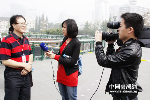 台湾记者接受四川媒体采访。(中国台湾网 马迪 摄)