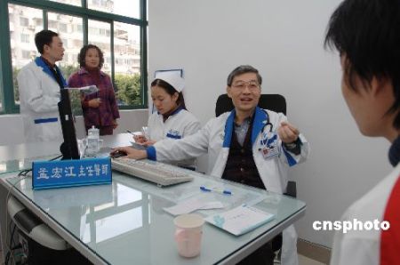 | 来自台湾的孟宏江医生在私营的福州美得生综合门诊部为顾客提供医疗服务。 (中新社资料图片) |