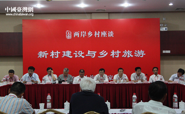 7月21日下午,参加海峡两岸农业交流协会和台湾省农会共同主办的首届“两岸乡村座谈”的部分两岸嘉宾,围绕 “新村建设与乡村旅游”的议题进行热烈讨论,共商发展大计。(中国台湾网 邵磌 摄)