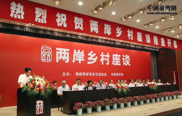今日上午,由海峡两岸农业交流协会与台湾省农会共同主办的两岸乡村座谈在上海朱家角镇开幕。国务院台湾事务办公室副主任叶克冬、农业部副部长危朝安、上海市副市长胡延照等领导以及台湾省农会总干事张永成等嘉宾出席了开幕式并致辞。