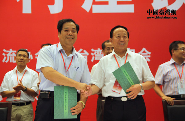 两岸乡村代表握手言欢。(中国台湾网 邵磌 摄)