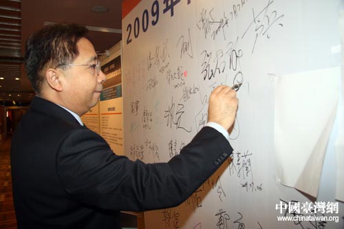 2009年两岸互联网发展论坛今天在北京开幕,图为参加论坛的嘉宾在签名墙上签名。(中国台湾网 邵磌 摄)