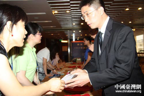 2009年两岸互联网发展论坛今天在北京开幕,图为参加论坛的嘉宾签到。(中国台湾网 邵磌 摄)