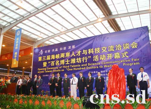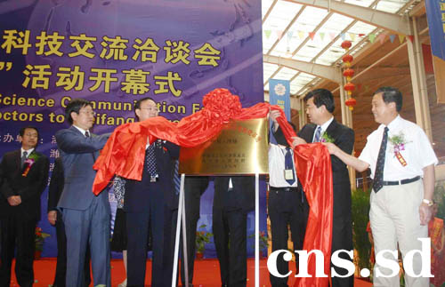 开幕式上,应邀出席的中国国家人事部留学人员和专家服务中心主任庄子健、国家人事部专业技术人员管理司巡视员谢军、山东省人事厅副厅长郑忠德及潍坊市委副书记、市长许立全为“中国博士后科技成果开发转化基地潍坊基地”揭了牌。