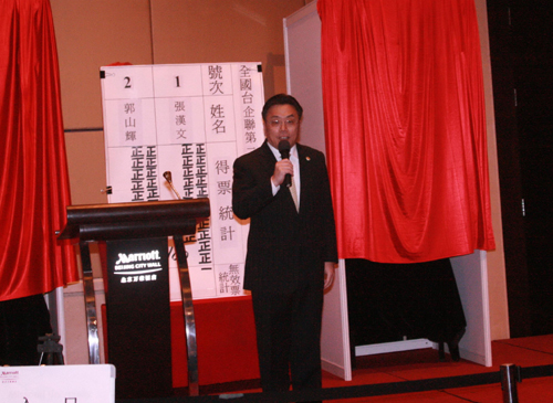 叶惠德主委宣布郭山辉得票过半,当选台企联第二届会长,并请其致当选感言。郭山辉在当选感言中说,台企联的未来是掌握在在座的各位会员手上,而不仅在于会长如何去做;刚才在政见发表中提到的“三个改变,四个目标,五个坚持”需要大家共同的支持,请大家在今后的三年里给予支持与鼓励。