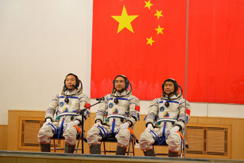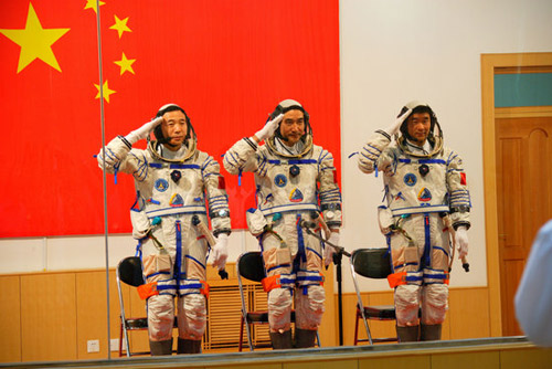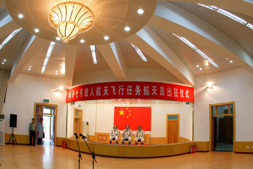 9月25日下午,问天阁接见厅,神舟七号航天员等待中央领导接见后出征。
