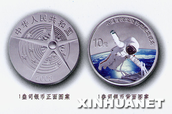 10月8日,中国人民银行发行中国首次太空行走成功金银纪念币一套。该套金银纪念币共2枚,其中1/3盎司金币1枚、1盎司银币1枚,均为中华人民共和国法定货币。这是1盎司银币正反面图案。新华社发