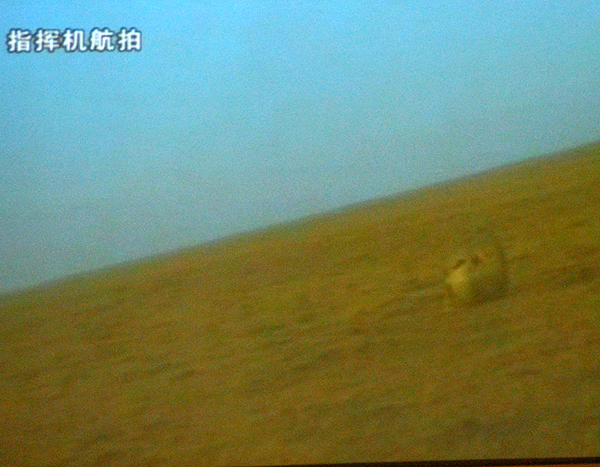 9月28日,神七返回舱成功着陆。新华社发(电视截图)