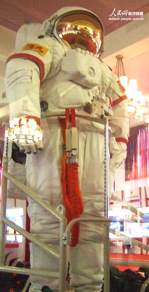 人民网科技11月10日电(记者 马丽) 《飞天壮歌——神舟七号载人航天飞行纪实摄影展》9日在军事博物馆开幕,神舟七号飞船返回舱、舱外航天服、翟志刚漫步太空的纪实图片等首次露面。 展览还展示了大量珍贵实物,包括胡锦涛总书记为我国研制的舱外航天服亲笔提名“飞天“的图案,飞船返回舱、飞船主降落伞、舱外航天服、翟志刚出舱使用的手套和太空行走挥舞的小国旗,以及部分飞船搭载物品和载人航天发射场模型等。
