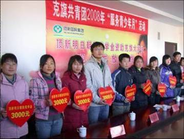11、2007年9月启动“顶新朝阳奖学金”资助贫困大学生。解决大学生庞大的学费开支。