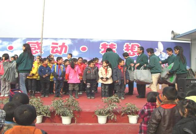 15、2008年12月30日,集团成都持续关怀办公室带着全体顶新人的祝福和爱心赴都江堰顶新希望小学进行岁末慰问祝福。为孩子们带去满载爱心的学习文具及保暖物品,让他们度过欢乐的新年。