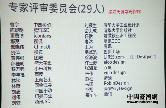本次大赛总决赛的专家评委名单。(中国台湾网 发)