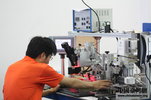 常州铭赛科技的技术人员正在制作机器人组件(中国台湾网 肖燕 摄)