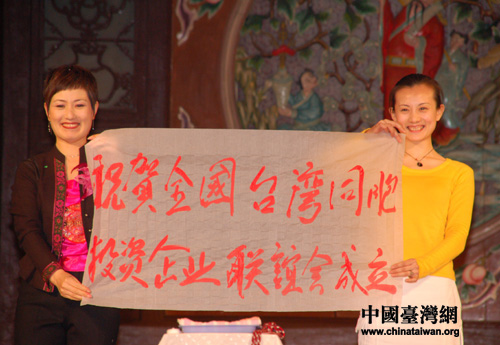 魔术师变出祝贺台企联成立横幅,赢得嘉宾一片掌声喝彩。