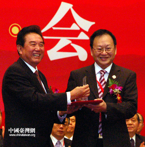 国台办主任陈云林为台企联首任会长张汉文颁发证书