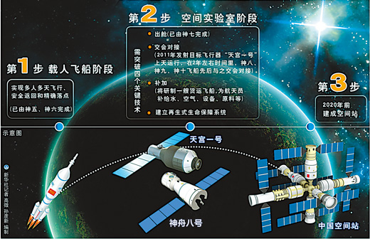 天宫一号将分别与神舟八号、九号、十号飞船进行交会对接