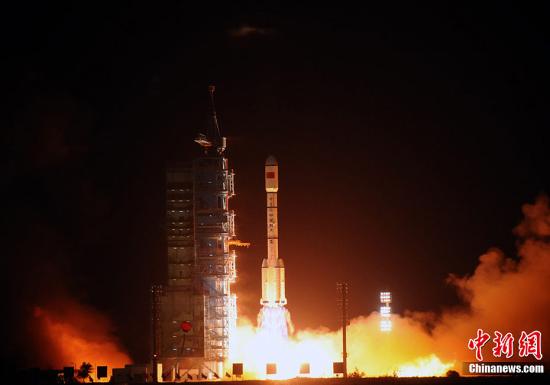 北京时间2011年9月29日晚21时16分,中国在酒泉卫星发射中心载人航天发射场,用“长征二号F”T1运载火箭,将中国全新研制的首个目标飞行器“天宫一号”发射升空。中新社记者 孙自法 摄