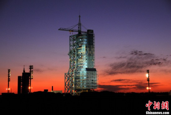 9月29日清晨,深秋时节的中国酒泉卫星发射中心载人航天发射场,“天宫一号”目标飞行器及其运载火箭――“神箭”“长征二号F”T1组合体在发射塔架一侧巍峨耸立,与大自然的晨曦、朝霞、日出和大漠戈壁一起,构成一幅绝美的画卷。按计划,备受瞩目的“天宫一号”将于9月29日21时16分至21时31分择机发射。(孙自法 摄)