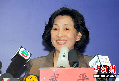 9月28日下午,“天宫一号/神舟八号”交会对接任务总指挥部在酒泉卫星发射中心举行新闻发布会,中国载人航天工程首位女新闻发言人武平精彩亮相,介绍“天宫一号”发射准备相关情况,笑答中外媒体提问。中新社发 孙自法 摄