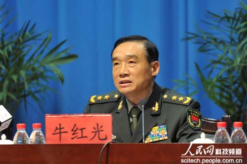 图为中国载人航天工程副总指挥、总装备部副部长牛红。人民网记者 翁奇羽摄