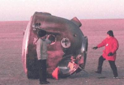 图:神舟一号飞船在内蒙古中部地区成功着陆