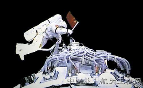 航天员翟志刚在神舟七号载人航天飞行任务进行出舱活动