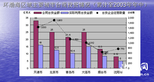 同时,环渤海经济圈良好的投资环境也有能力承接台资北扩的新趋势。南开大学经济学院院长周立群也指出,环渤海经济圈辐射东北、华北、西北,拥有广阔的腹地,原材料供应充足,港口、物流等功能优势明显;该地区既有传统重工业基地和农业地区,也有相对发达的高科技产业和金融业,加上这里人口密集、高校众多,又有北京奥运等重大项目,因此在大型商业、房地产、农业、旅游等行业商机广阔。
