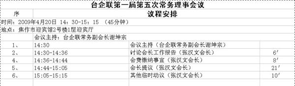 4月20日 14:30-15:15 台企联第一届第五次常务理事会议