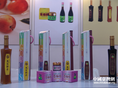 “凤梨酵素、青梅精、纳豆梅精”,台湾特色农产品深加工品出现在了展台上,准备向大陆消费者展示其浓郁的台湾特色。(摄影:魏萌)