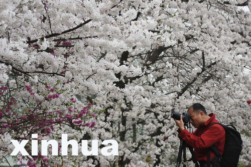 3月22日,一位摄影师在樱花树下拍摄樱花。李理 摄