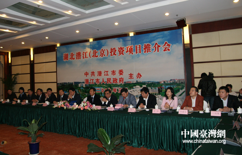 中国台湾网3月24日北京消息 三月的北京,春意盎然。湖北省潜江市赴京投资推介会今天下午在北京举行。台湾水泥集团、台塑集团、台湾国泰人寿保险有限公司、台湾合作金库银行等台资企业的驻北京代表参加了此次推介会。