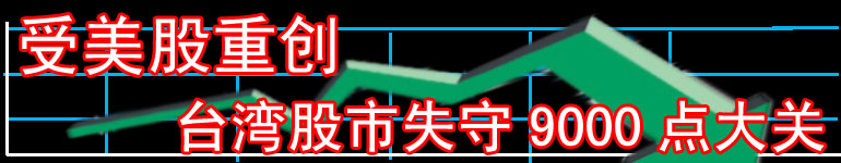 受累美股暴跌,台湾股市上周低开低走,暴跌3.90%,创下近两个月来低点,台湾加权股价指数收盘大跌362.64点至8937.58点,失守9000点大关。 |