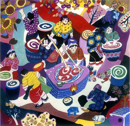 内黄农民画是枣乡内黄民间艺术的一朵奇葩。20多年来,它犹如枣林一样,岁岁开花,年年结果,逐渐形成了自己独特的艺术风格。它线条古朴,色彩鲜明,造型生动,在继承传统的基础上又大胆的吸收现代派艺术之长,以勾线为主,用不同的线勾勒不同的形体,以红、绿、黄、蓝、黑单色为主,并用当地特有的土制颜料,形成强烈的民俗化色彩,具有“质朴、淳厚”的人物造型和“笨拙、粗黑”的表现形式,在讴歌党的富民政策,展现农民新的生活,描绘农村新风貌和新风情的创作中,显示出旺盛的生命力和独特的审美价值。 1992年,中国美术馆举办了“内黄现代民间绘画展”。1993年,枣乡内黄被国家文化部命名为“民间艺术之乡”。1999年,作为河南省对外交流项目赴新加坡展出。2001年,在陕西户县联展。之后,作为安阳市对外文化交流项目赴日本展出。 由于受李剑晨,陈希庐等前辈画家的影响,如今,内黄农民绘画蔚然成风,上至八旬老人,下至八岁孩子,常常茶余饭后,劳动之余,提笔作画,切磋技艺,这些农民画创作者大多来自农村,他们凭借对绘画对生活的直感,用纯朴天然的笔触,讴歌美好的田园生活,极富生活情趣。 内黄农民画,充满时代气息和乡土风味,在继承传统的基础上又大胆吸收现代派艺术之长,以勾线为主,用不同的线勾勒不同的形体。以红绿黄蓝黑单色为主,并运用当地特有的土制颜料,形成了强烈的民俗化色彩,具有质朴、淳厚的人物造型和笨拙、粗黑的表现形式,在讴歌党的富民政策,展现农民新的生活,描绘农村新风貌和新风情的创作中,显示出旺盛的生命力和独特的审美价值。